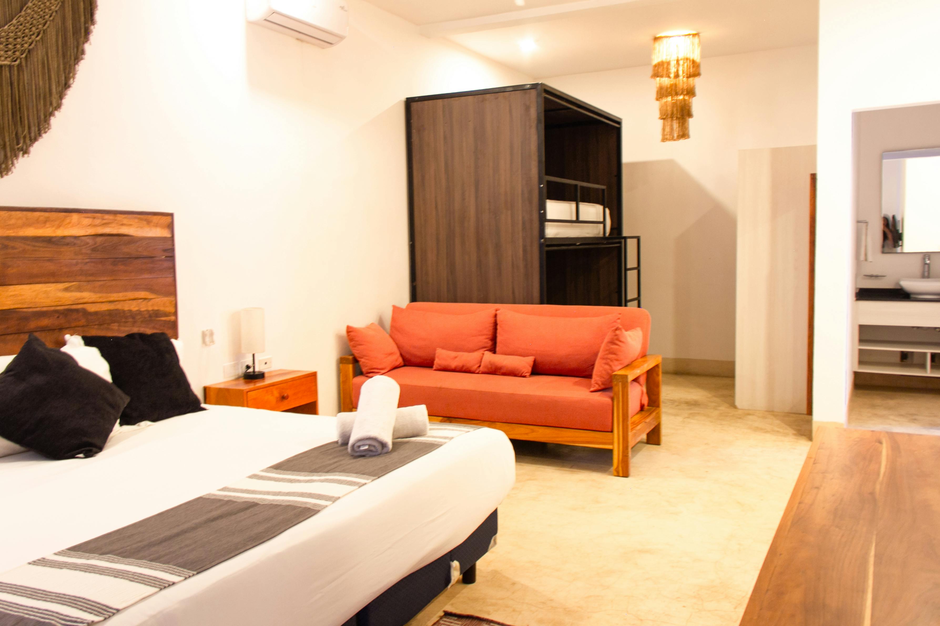 Designed to provide comfort and space for the whole family, our Family Kids Suite has everything you need for a pleasant stay. The room includes the following layout: Two queen-size beds for total relaxation. Bunk beds designed especially for children. Sofa bed for added flexibility. Bar with sink and microwave, ideal for preparing snacks at any time. Closet and storage area. Full bathroom with all amenities.